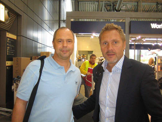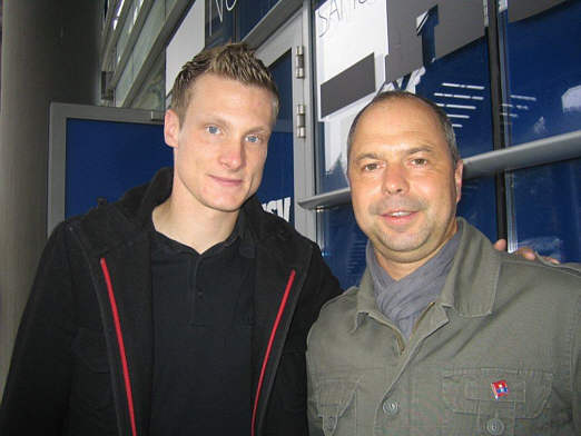 Als er aus dem Spielertunnel kam, gab es erst einmal ein großes Hallo und eine herzliche Begrüßung. Nach Fotos und Autogrammen wurde noch ein wenig über dies und das geplaudert. Anschließend verabschiedeten wir uns, überreichten noch ein nachträgliches Geburtstagsgeschenk für Jacqueline sowie ein kleines „Leckerli“ für Ego und machten uns dann auf den Weg in die Raute, um uns zu stärken.